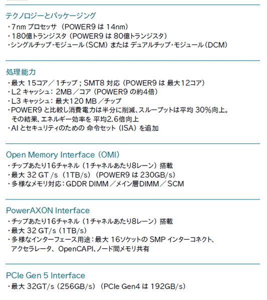 Power10プロセッサはシングルチップ・モジュール(SCM)の4コアまたは8コアで、2ソケットの構成が可能である。