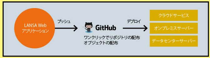 LANSAは今まで独自のリポジトリにより、IBM iのバージョン管理やアプリケーション配布に力を入れてきたが、GitおよびGitHubと連携することで、今後はIBM iはもちろん、AWSやAzure、IBM Cloudなどのクラウドサービス、オンプレミス環境のサーバー群、データセンターサーバーなど多様な環境を対象に、ワンクリックでWebアプリケーションの配布およびバージョン管理を実行できるようになる。