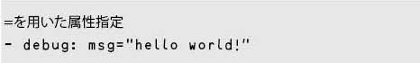 初期のAnsibleでは=を用いて属性を指定する書式が使用されており、現在も使用できる。=を用いている箇所は、YAMLとしては単なる文字列として扱われ、フォーマッターによるフォーマット対象外となる。 -は以下のように、それのみで行を変えても問題ない。