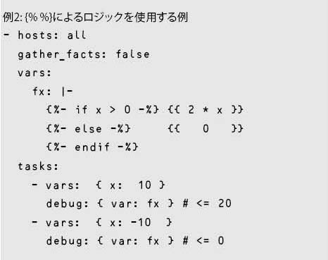 ただしAnsible Playbookでは属性のみでなくロジックもYAMLで表すため、一般的なプログラム言語でできることがそのまま実行できるとは限らない。そこで本稿では、Ansibleではどのようにロジックを扱えるのかという観点から、Ansible Playbookを記述するうえでのTipsを紹介する。