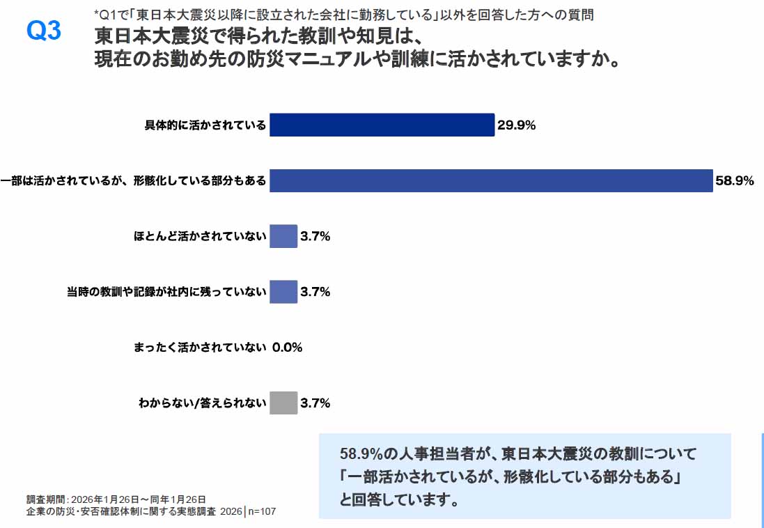 トヨクモは3月11日、「企業の防災・安否確認体制に関する実態調査2026」の結果を発表した。