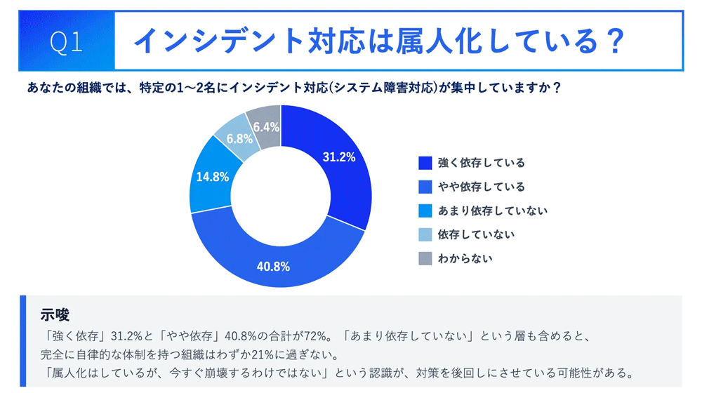 SIGQ、「インシデント対応の属人化に関する実態調査 2026」を公開 ~「インシデント対応が特定の1人に依存」72.0%、うち88.9%がキーパーソンの退職リスクを認識
