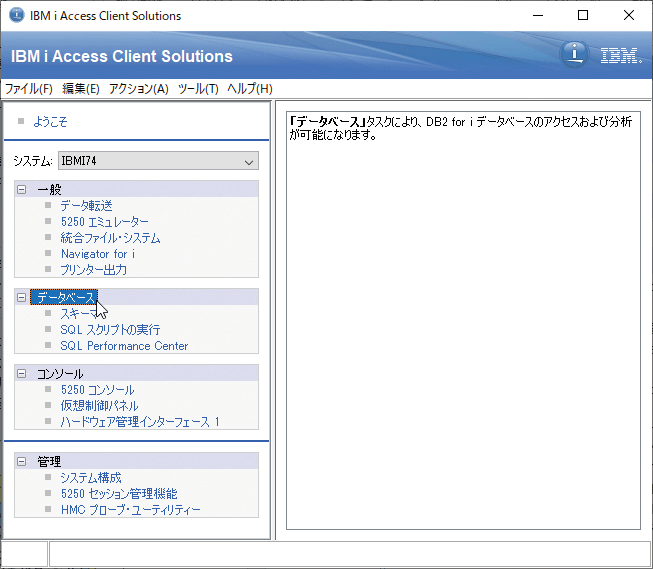 システム・インターフェースでオブジェクトを操作する場合には、5250エミュレータを使用すればよい。SQLでオブジェクトを操作する場合には、ACS(IBM i Access Client Solutions)のデータベース機能を利用できる(図表5)。