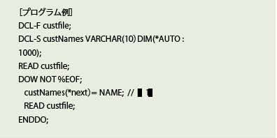 ②例: DIM(*AUTO)で定義された配列に指標として*NEXT を使用