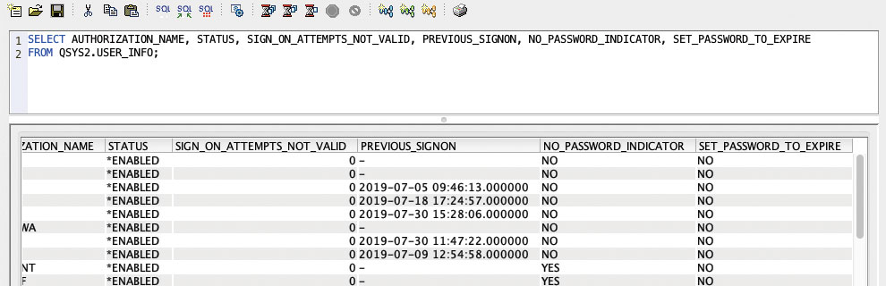 たとえば、社内ヘルプデスク業務において、チャットボットの活用が増えている。そのような用途では、IBM i サービスのユーザー・プロファイルの情報を操作するSQLスクリプトを活用することによって(図表3)、IBM iへの接続時のアクセス資格情報やパスワード関連の問題に対する問い合わせを自動的に処理するチャットボットを開発することも可能である。