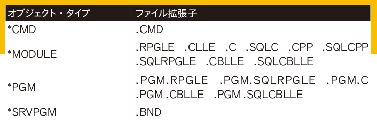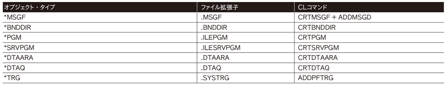図表19のオブジェクト・タイプは、ソース・ファイル内に疑似CLコマンドを記述することで、オブジェクトの作成を行える。