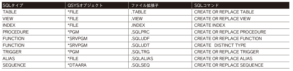 図表20のSQLタイプのオブジェクトは、ソース・ファイル内にSQL文を記述することで、オブジェクトの作成を行える。