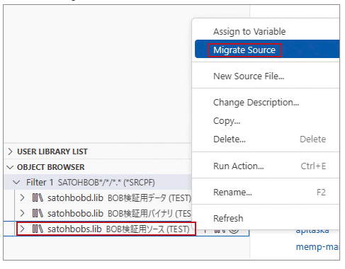 Code for IBM iのObject Browserビューには、ライブラリー中のソース物理ファイルをiプロジェクトに移行する機能が用意されている。PCのローカル・ドライブ上にプロジェクトのルートとなるフォルダを作成してiproj.jsonを配置した後、移行機能を実行するだけである(図表26)。