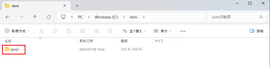 ❶ PC内の任意の場所にプロジェクトのルート・ディレクトリーとなるフォルダーを作成する。ここでは例として、「C:\ibmi」フォルダー内に「iproj1」という名前のフォルダーを作成し、「iproj1」をプロジェクトのルート・ディレクトリーとして扱うことにする。