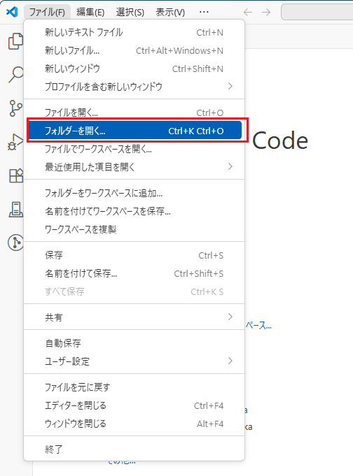❷ VSCodeを起動し、作成した「iproj1」フォルダーを開く。