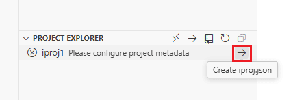 ❺ プロジェクト・エクスプローラー内に表示されているiproj1の「Create iproj.json」アクションを実行する(iprojの右側の矢印をクリックする)。