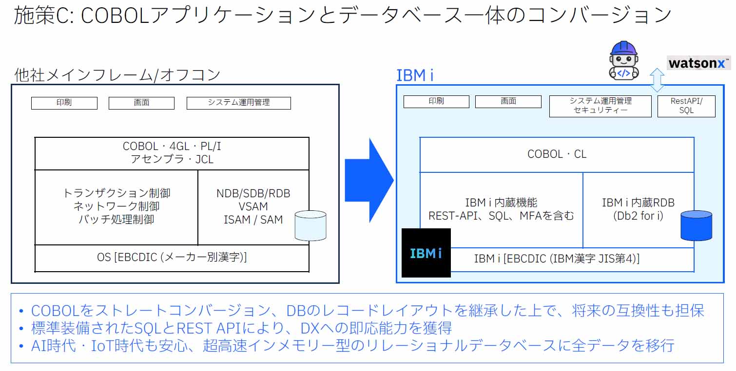 そして3つ目の施策Cは、他社のCOBOLシステムからのコンバージョンです。これについては、すでに施策として展開中で、多くの実績と技術もありますが、COBOLをお使いのお客様が多いので、新たな施策の1つに加えています」