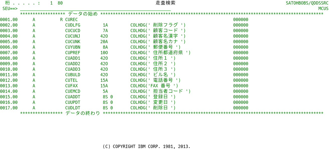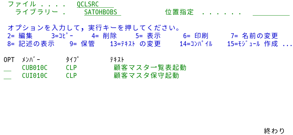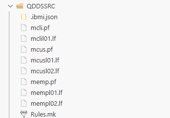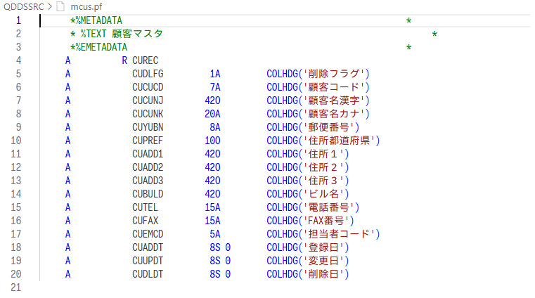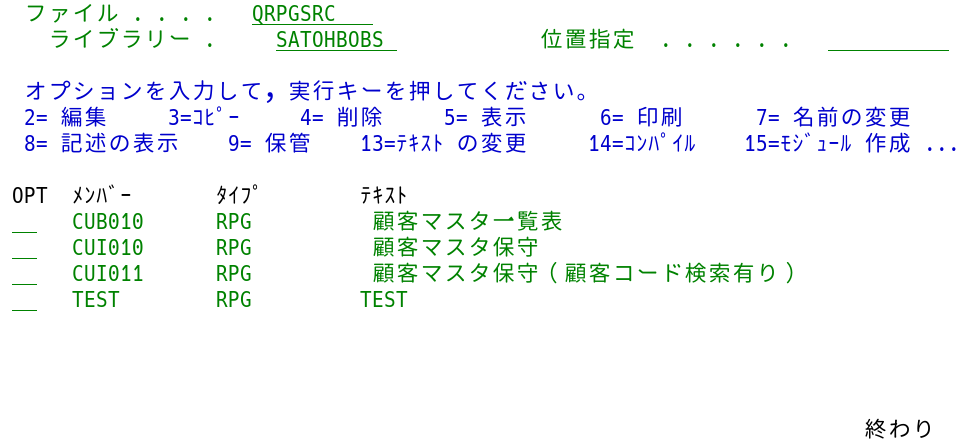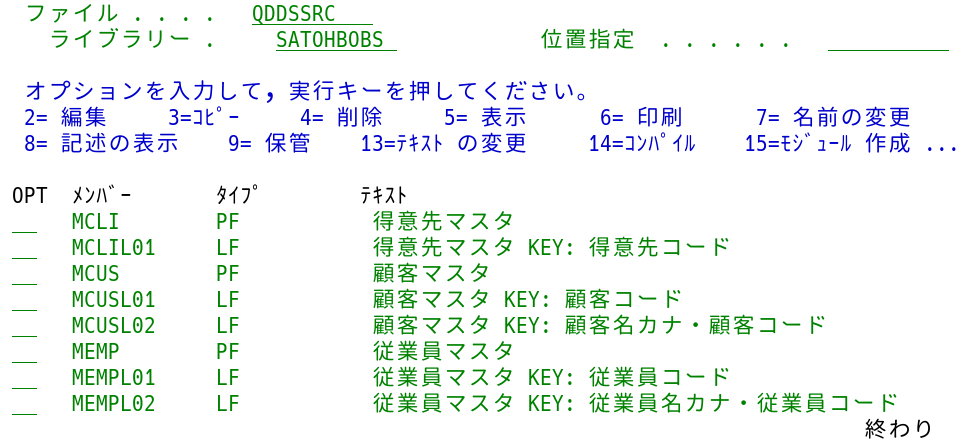 DSPFソース・メンバーを格納しているQDSPSRCと、PRTFソース・メンバーを格納しているQPRTSRCについては、QDDSSRCと変わらないため割愛する。