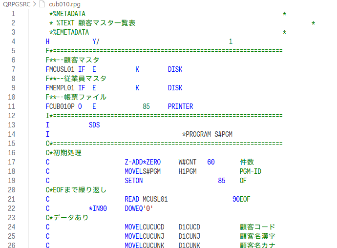 図表3、図表4は、変換前のソース・メンバーCUB010と、変換後のテキスト・ファイルcub010.rpgの内容の一部である。