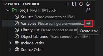 最初にProject Explorerの「Variables」見出しの「Create .env」アクションを実行し、.envファイルを作成する。