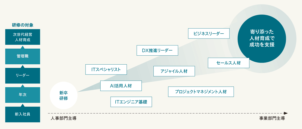 「当社の研修サービスはIT研修はもとより、ビジネス系・営業系の研修にも長い歴史があり、強みをもっています。これからは事業部の方たちもITやAIのスキルを身につけ、デジタル人材としてDXを推進していく役割を担います。