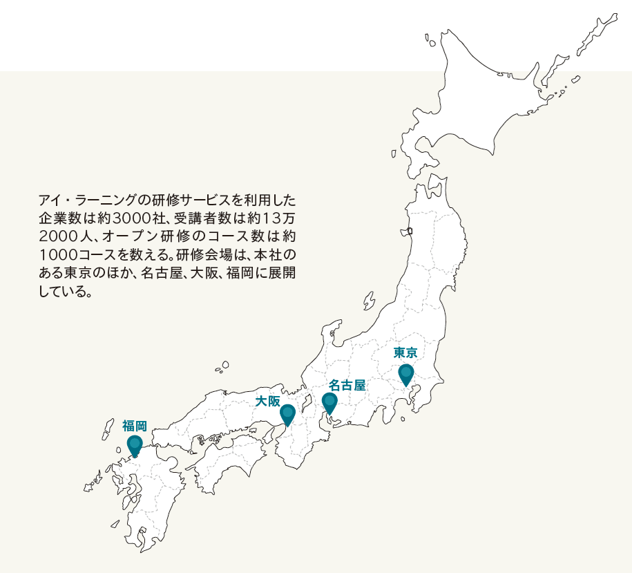 アイ・ラーニングの研修形態には、これまでに紹介してきた「オープン研修」のほかに、「プライベート研修」もある。オープン研修は、カリキュラムと開催日があらかじめ設定されている研修コースで、複数の企業が参加する形態。「プライベート研修」は個別の企業向けに企業の意向を踏まえてカリキュラムをカスタマイズして行う研修である。