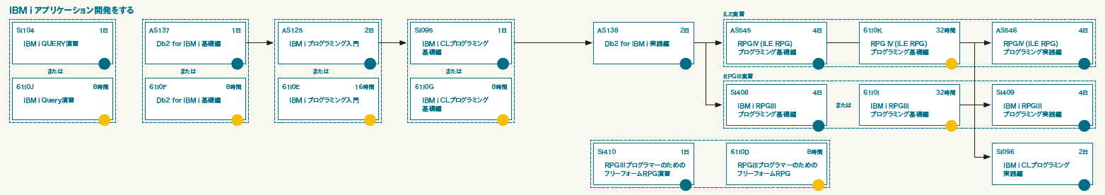 IBM iのプログラミングに関しては、入門編のほかに以下の7つのコースがある。
