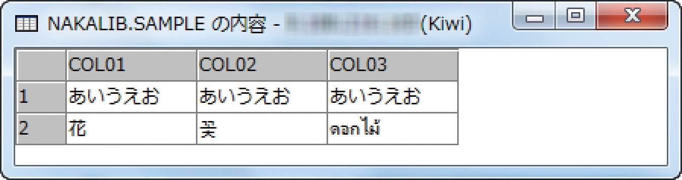 いずれもSQLで通常にデータを取得した場合には「あいうえお」と表現されているが、バイト列を見ると、各文字コードに沿ったデータとして格納されていることがわかる。また、図表6のように当然だがUTF-16、UTF-8のカラムには各国語の文字を入れることもできる。