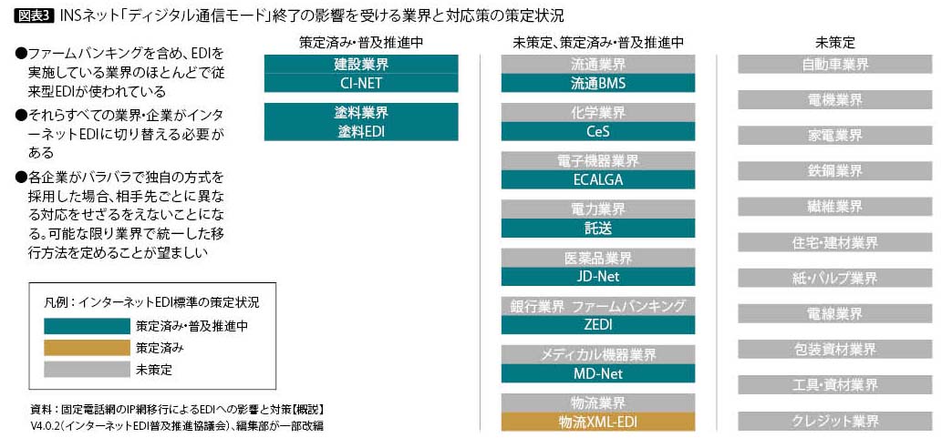 それゆえインターネットEDIなど代替策への移行が必須になるが、その移行にはさまざまな問題・課題があるため、1企業の問題にとどまらず、日本のビジネス全体に深刻な影響を与えるインパクトを秘めている。それが大きな問題なのである。
