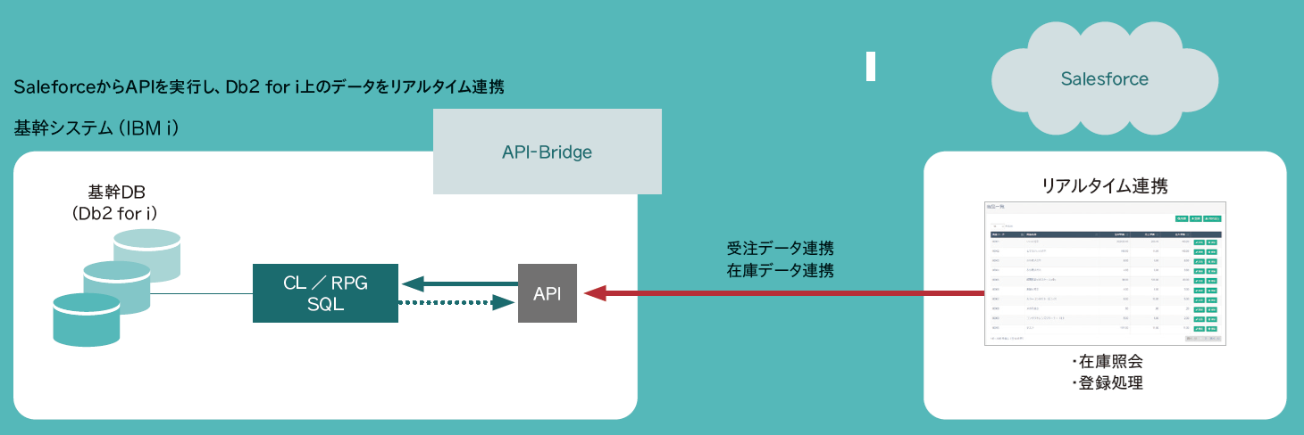 IBM iとSalesforceをリアルタイムにAPI連携するデータは2種類ある(どちらもSalesforceからIBM iへの連携である)。