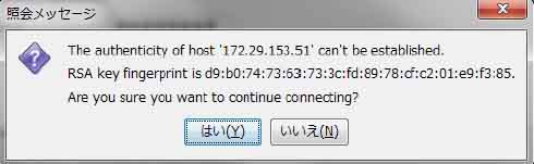 6. ホストに接続するか?尋ねられるので[はい(Y)]をクリックします。